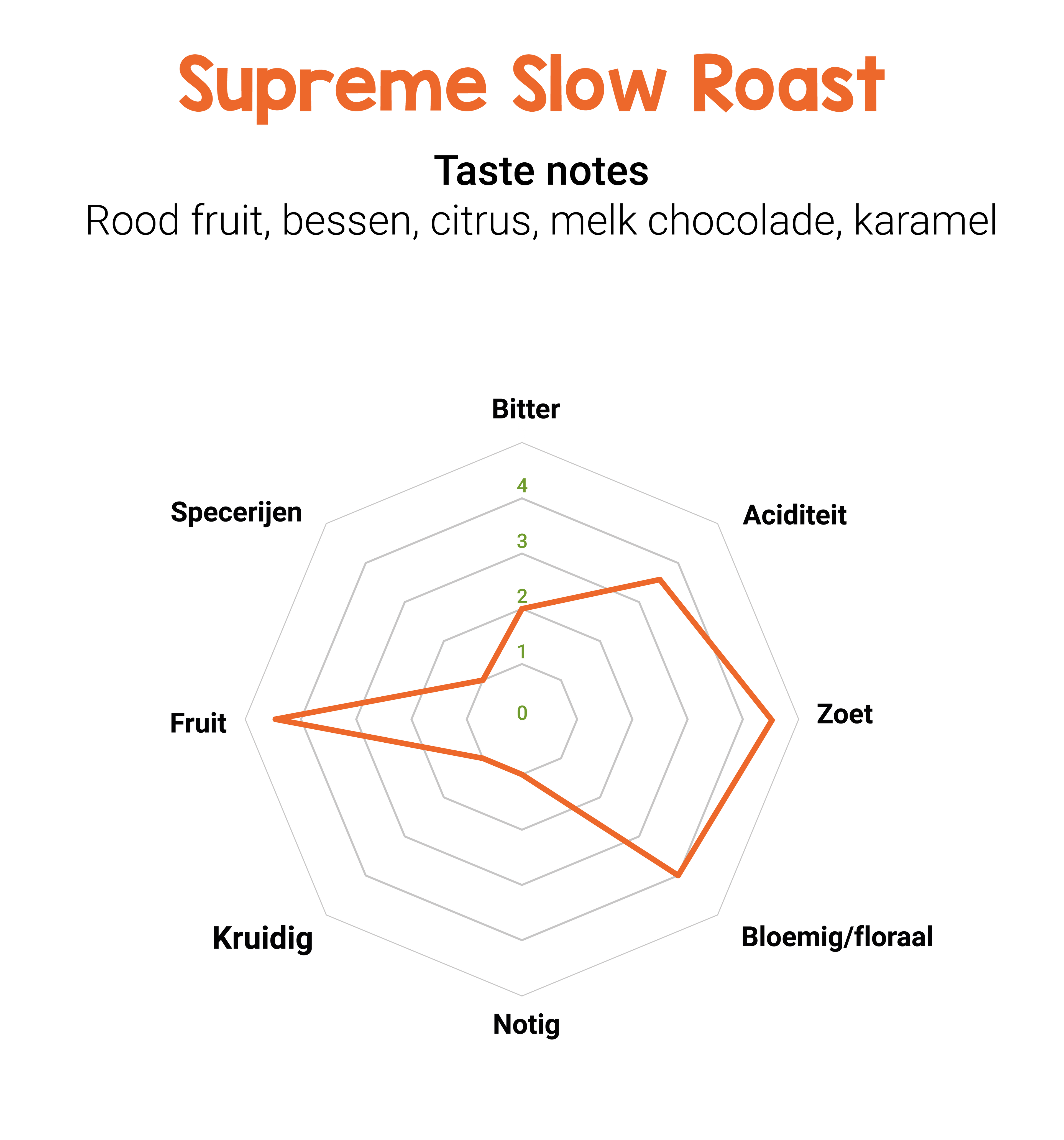 De Ethiopia Yirgacheffe is een specialty koffie die zowel zoet als fris is. Deze 100% biologische specialty koffie biedt levendige smaaktonen van rood fruit, bessen en citrus, perfect in balans met de zoete hints van melkchocolade en karamel.